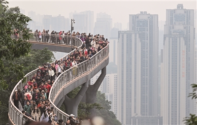 近日,重庆半山崖线鹅岭栈桥正式对外开放。该栈桥全长460米,宽3米,最高处距地面28米,依天然崖壁而建,将鹅岭公园与佛图关公园连为一体,独特的观江视野使其成为重庆旅游观光的新晋地标。